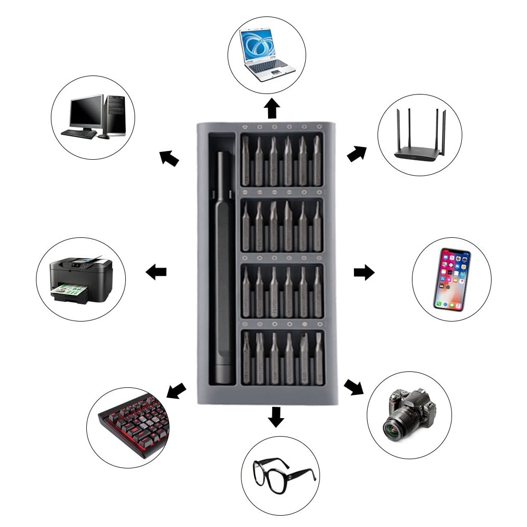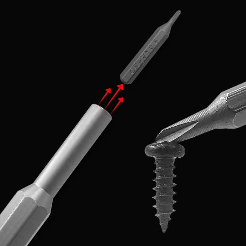 – Diversos tipos de pontas (Fenda,Philips, Torx, Allen, Y)