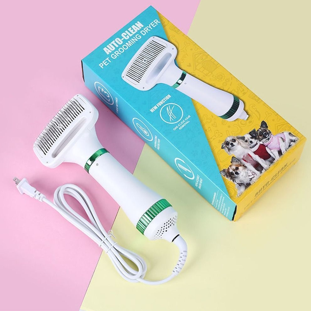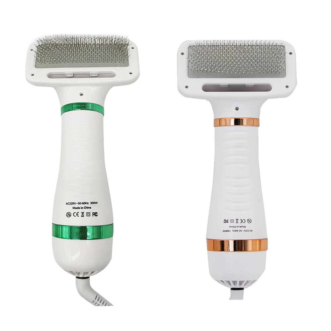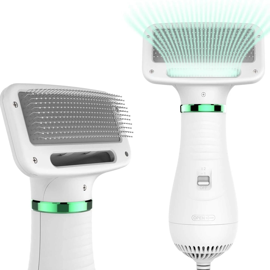 A escova de cuidados 2 em 1 para animais de estimação combina secador de pelos com escova de pelos do seu PET, pode ser muito mais fácil secar seu animal de estimação após o banho, uma escova mais fina para manter o cabelo do animal de estimação macio e limpo. Ótimo para cuidados com o pelo do animal de estimação, secagem rápida e belos cuidados, mais conveniente e economia de tempo a temperatura de alto e baixo nível pode ajudar a secar seus animais de estimação rapidamente, economizando energia e adequado para evitar dor e queima. É sugerido que a configuração baixa seja primeiro, para ser menos quente e mais confortável . O secador de cabelo para animais de estimação projetado especificamente para pequenos cães e gatos médios , funciona muito bem para cães com medo do soprador.