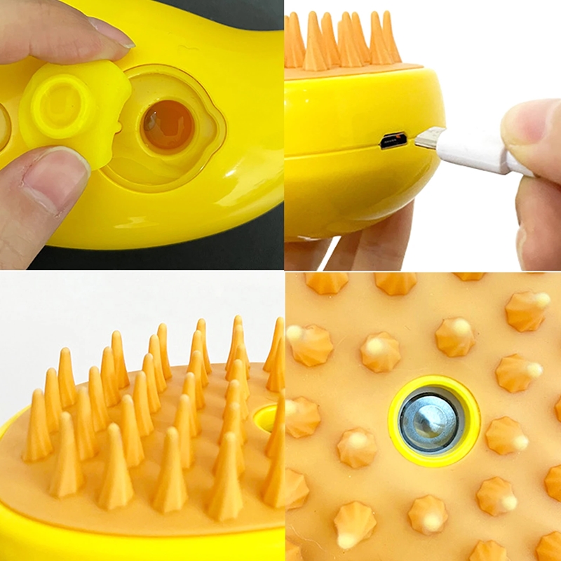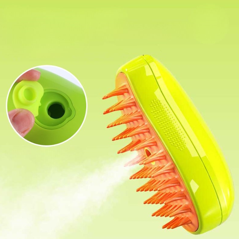 Esta escova possui uma saída de vapor integrada às cerdas, permitindo umidificar o pelo do seu pet durante o banho a seco ou na remoção de pelos soltos. O vapor ajuda a soltar os pelos e facilita o processo de escovação, tornando o cuidado com seu pet mais prático.