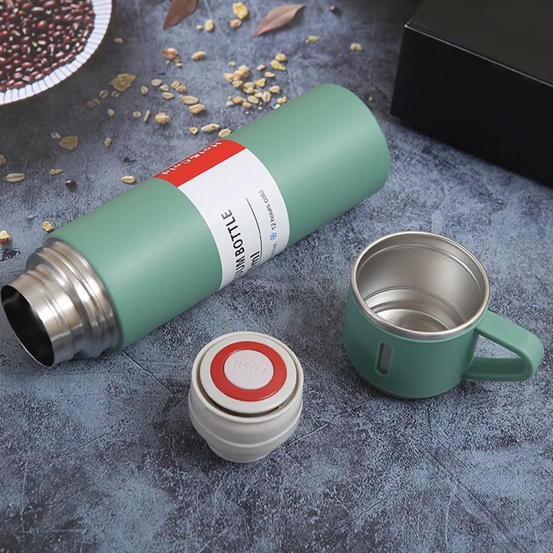 Kit Garrafa Térmica Inox 500ml Com 3 Xícaras
